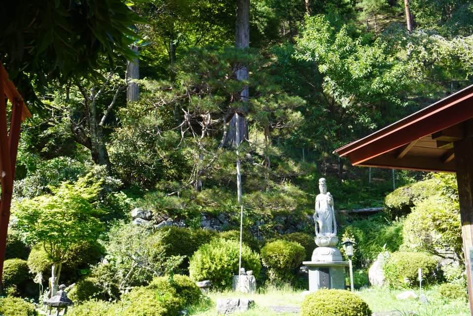 お寺から川上へ進むと、茅野方面に抜けることができますが、すれ違いが難しい細く険しい山道がひたすら続きますのでご注意ください。