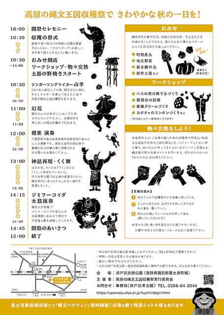 富士見町の井戸尻史跡公園において「高原の縄文王国収穫祭」が開催されます。