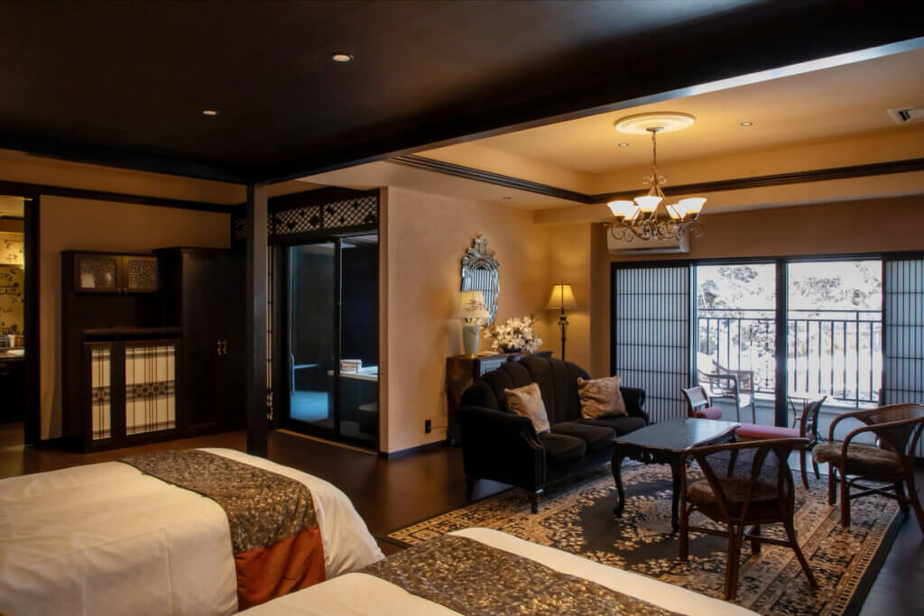 伊藤左千夫スイートと柳原白蓮スイートの改装を行い、露天風呂付きの当館最上級客室へと生まれ変わりました。