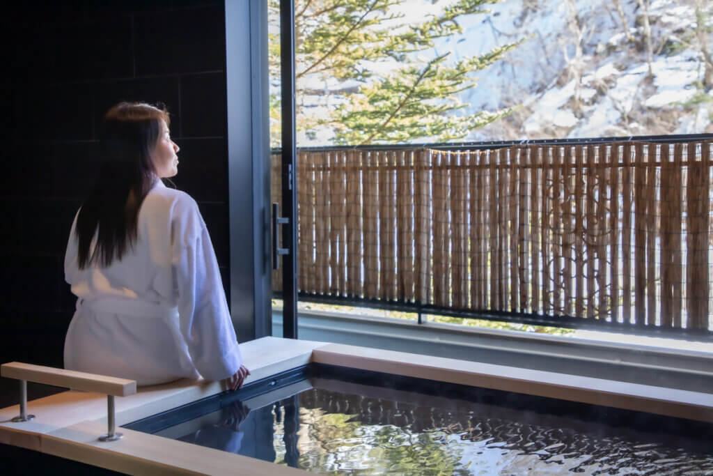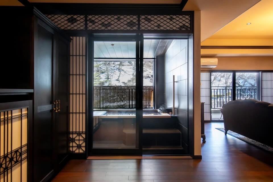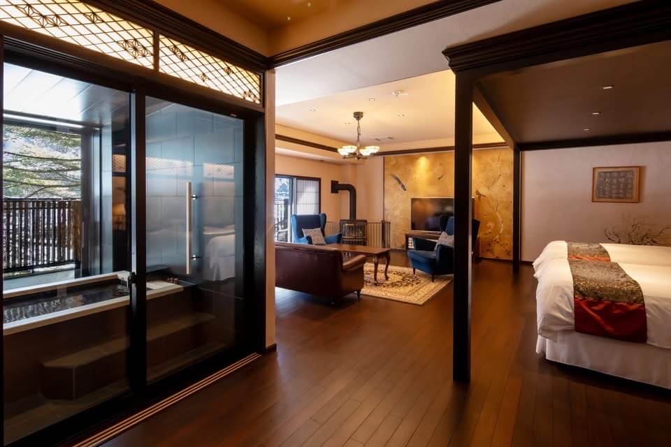 文人のイメージに合わせた明治・大正期のクラシックでモダンな設えのまま、広々とした露天風呂は蓼科の新鮮な空気の中、源泉掛け流しの温泉や四季折々の景色を独り占め。