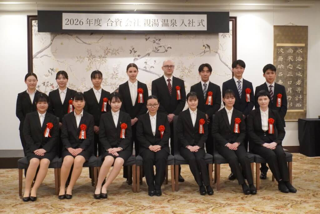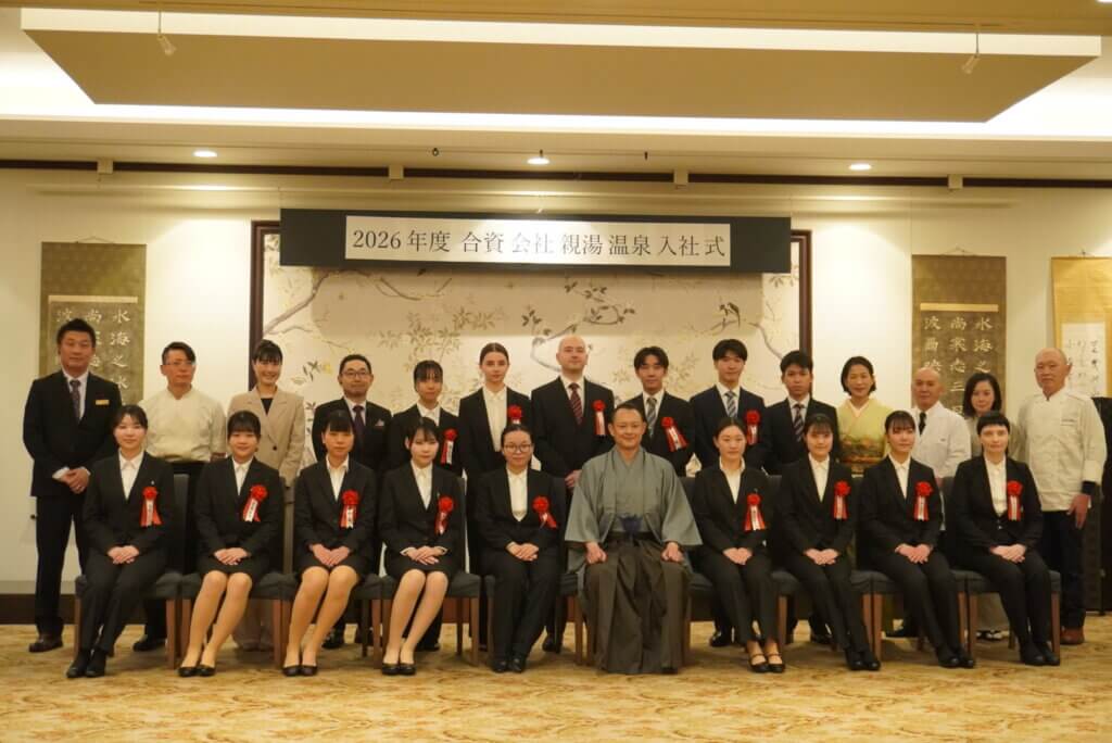 4月1日、合資会社親湯温泉(蓼科 親湯温泉・上諏訪温泉 しんゆ・萃sui-諏訪湖)では、2026年度入社式が執り行われ、新たに15名の新入社員を迎えました。